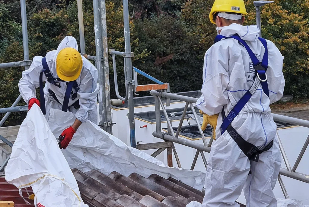 Die Entfernung asbesthaltiger Materialien erfolgt unter strengsten Schutzmaßnahmen: