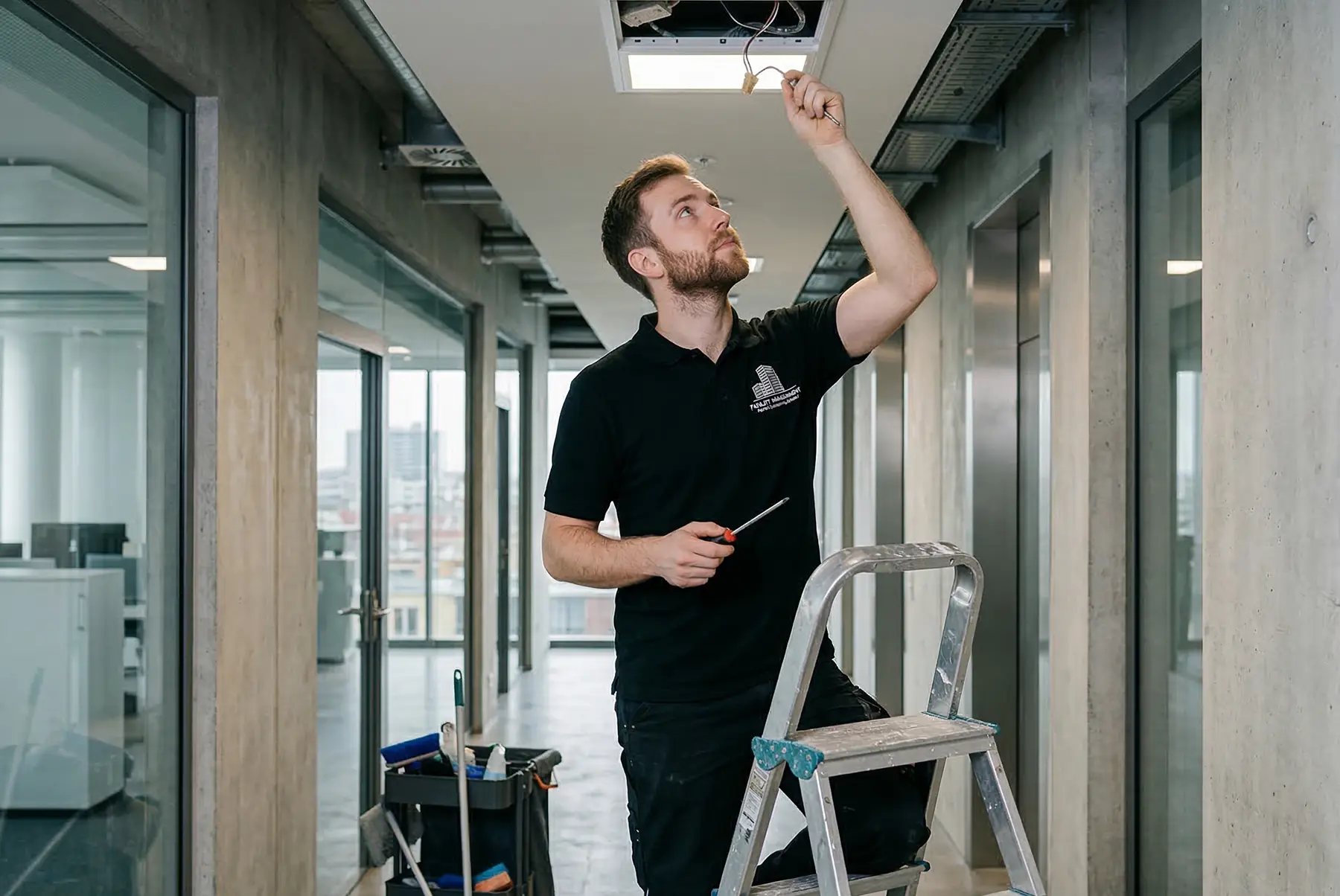 Unser Service endet nicht beim simplen Glühbirnenwechsel: Als etablierter Dienstleister kümmern wir uns um den ganzheitlichen Werterhalt Ihrer Immobilie. Wir erkennen Mängel, bevor sie zu echten Problemen werden, und sorgen dafür, dass sich Mitarbeiter, Mieter oder Gäste jederzeit in einem gepflegten Umfeld wohlfühlen.