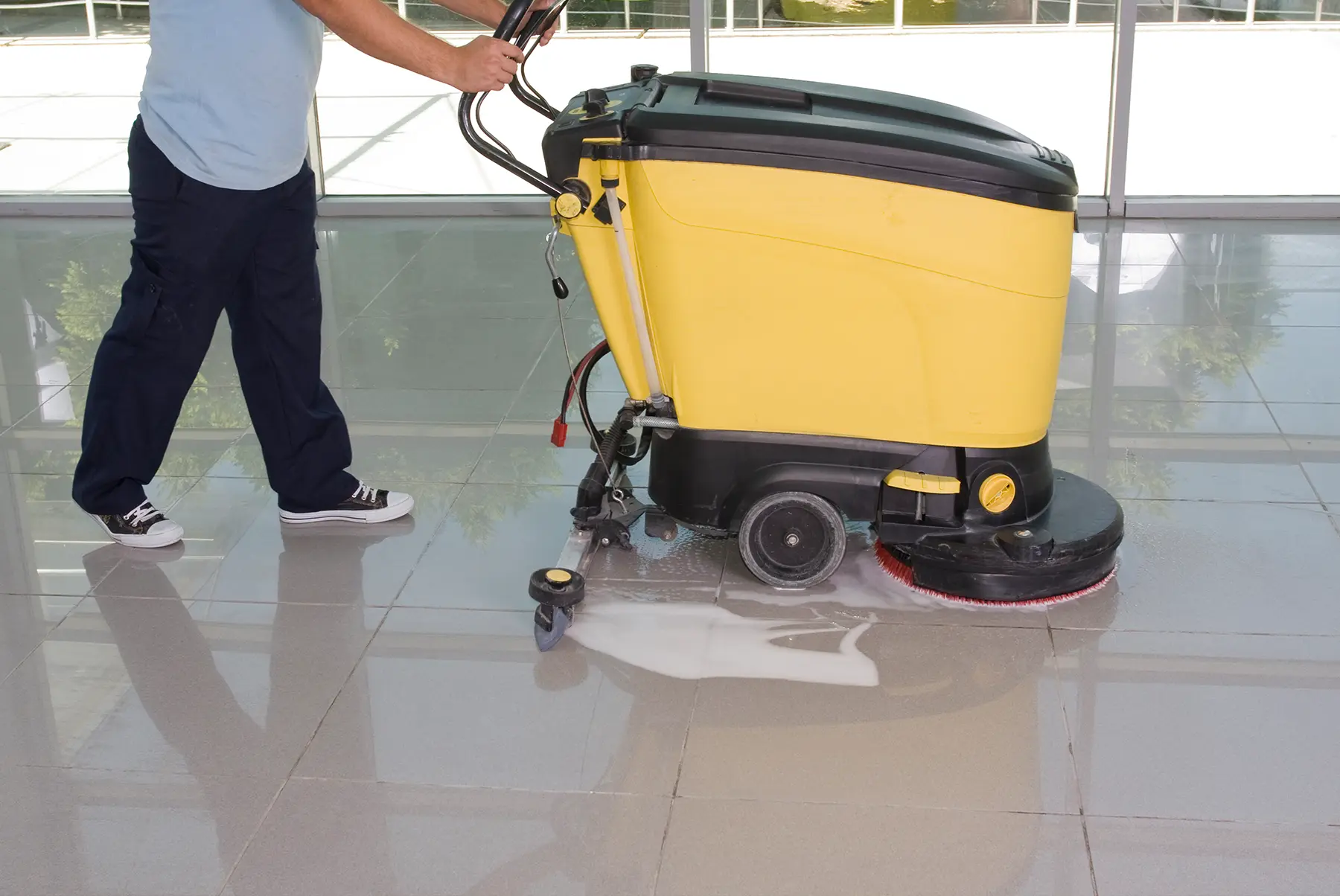 Nein, auf keinen Fall. Wir bringen unseren kompletten Maschinenpark – von großen Aufsitz-Scheuersaugmaschinen bis zu speziellen Industrie-Saugern – sowie alle industriegerechten Reinigungsmittel selbst mit.